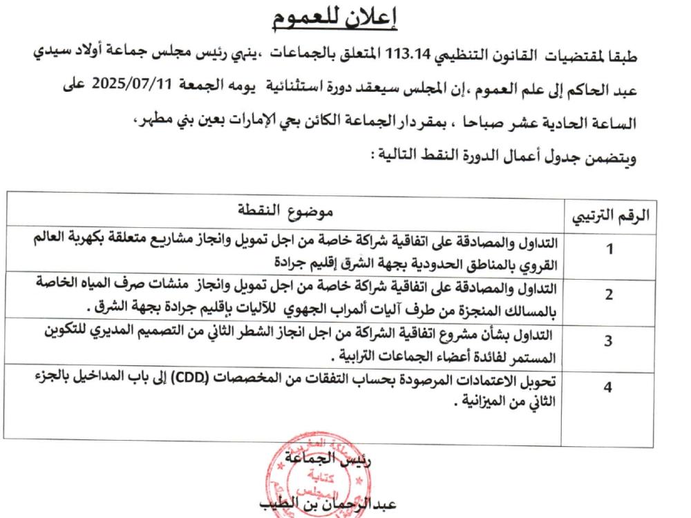 جدول أعمال الدورة العادية لشهر اكتوبر 2025